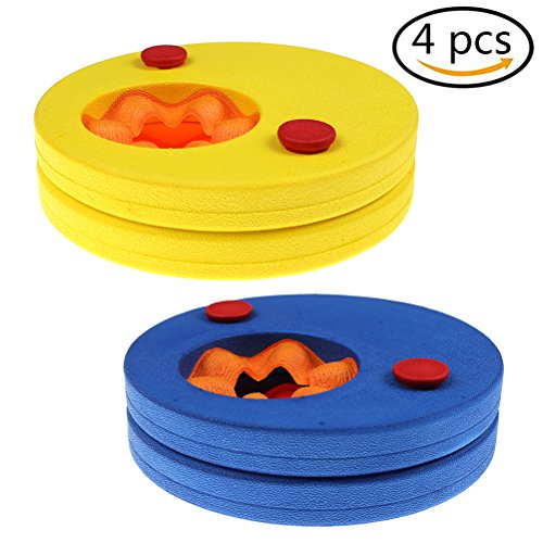 -. Feature : Material:Made of EVA foam material,will not chip or absorb water.Safer than the inflatable swimming armbands. / Color:come with 2 colors(blue,yellow),2 pieces for each color,4 Pcs in total / Size:Single diameter 18.5cm/7.28 inch,thickness 2.3cm/0.91 inch. / Apply To:Perfect for the Learn-to-swim kids whose arms circumference are under 16cm/6.3 inches. / Notice:suitable for 4-10 years.To be used under the direct supervision of an adult.