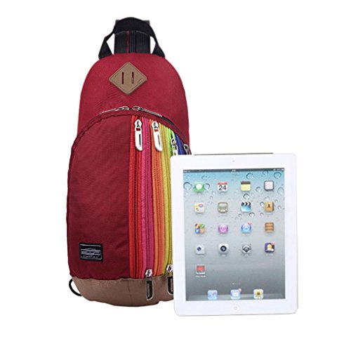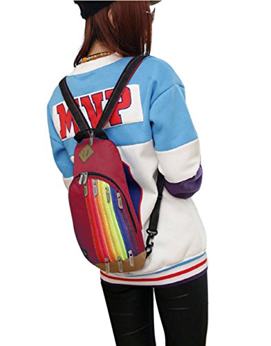 Fashion unique rainbow color zippers decoration,bright color,adjustable zippered shoulder straps,durable and practical sling backpack,perfect for cycling, running, hiking, excursions, climbing,travelling or anyother outdoor activities.