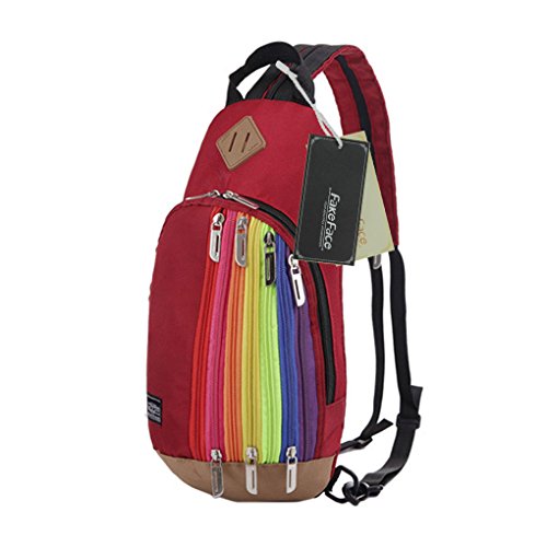 FakeFace Unisex Multipurpose Rainbow Zipper Casual Sport Travel Shoulder Cross Body Bag Sling Messenger Backpack Rucksack for Men Women Hiking Gym Chest Pack Pouch Bag