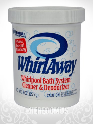 -. Feature : WhirlAway can be safely used in all plumbing systems, will not harm or mar acrylic, fiberglass, ABS / WhirlAway does not contain any chlorine compounds or hypochlorite bleaches. / It solubilizes, lsifies contaminates such as soap scum, bath oils, body oils, mold, mildew, etc / WhirlAway is environmentally safe, 100% biodegradable. / Available in 8 oz. jar