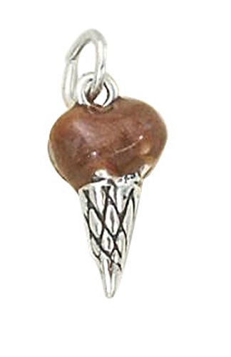 -. Title : Sterling Silver Womens 1mm Box Chain 3D Enameled Chocolate Ice Cream Cone Pendant Necklace