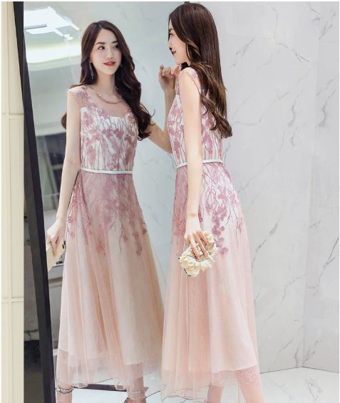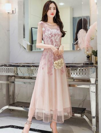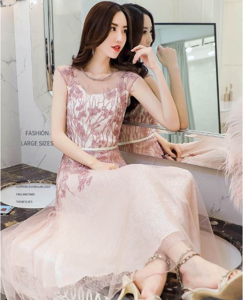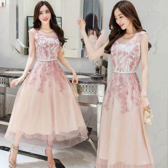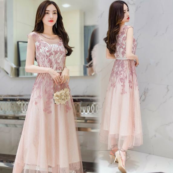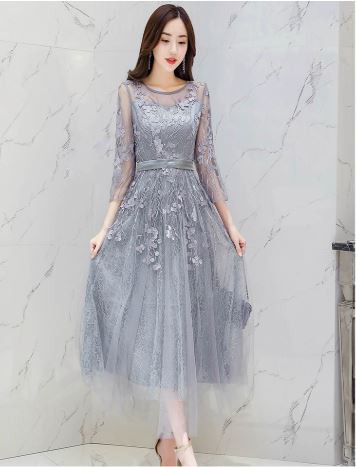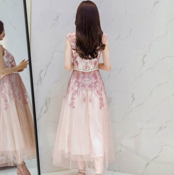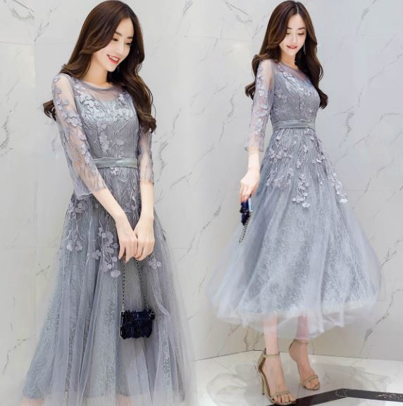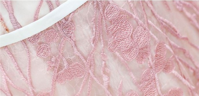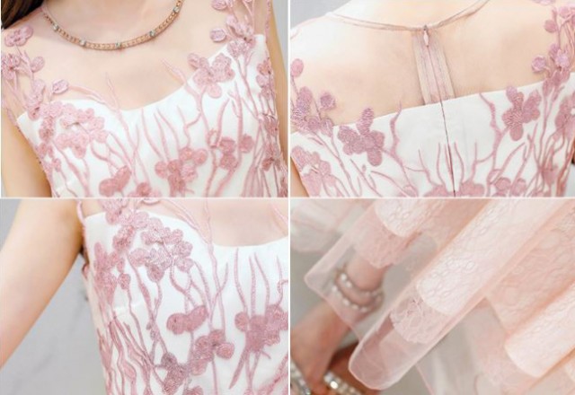 たくさん刺繍の施されたレース使いが華やかなドレスです。