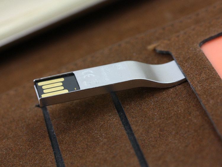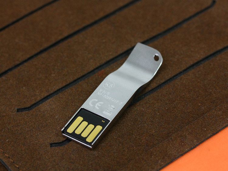 接口方面,SSK SFD199(4GB)金属优盘采用双层设计,内层即黑色金手指部位采用PIPTM封装技术,外层采用较厚的金属围壳固定保护,因而该款优盘的接口结实不易折断。由于这款优盘采用特殊的接口封装技术,因此不存在盘帽丢失问题,穿进钥匙扣里,随带随走。