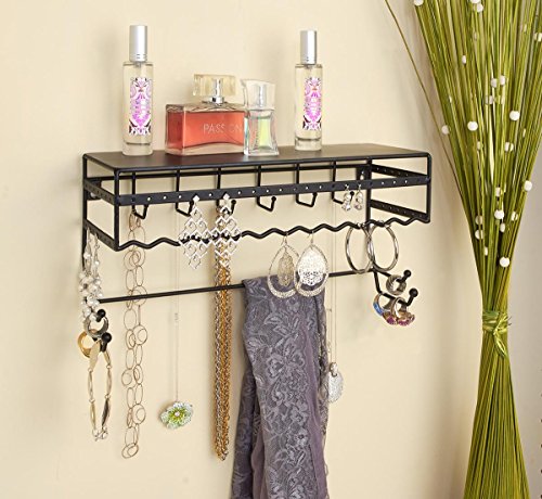 Black 13.5" Wall Mount Jewelry & Accessory Storage Rack Organizer Shelf for Earrings, Bracelets, Necklaces, & Hair Accessories