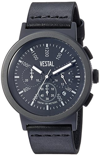 -. Title : Vestal 'Retrofocus Chrono' Quartz Stainless Steel and Leather Dress Watch, Color:Black (Model: SLRCL002)