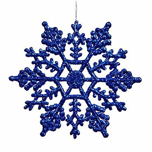 SPARIK ENJOY 3 inch mini Plastic Snowflake Ornaments, tiny 24pcs Sparkling Blue Iridescent Glitter Snowflake Ornaments on String Hanger for Decorating,wedding and Embellishing (3 inch, Blue)