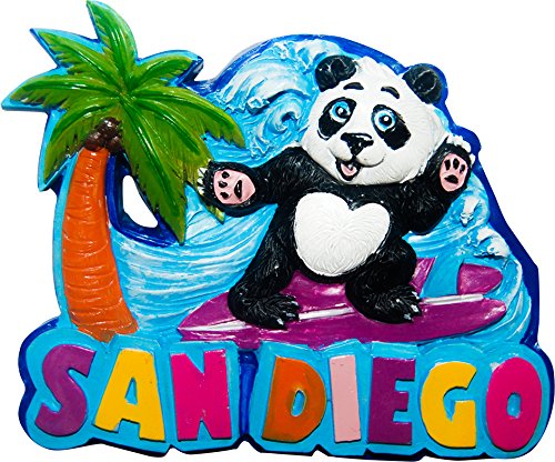 San Diego Beach Colorful Souvenir Magnet- Featuring Panda Riding The Waves