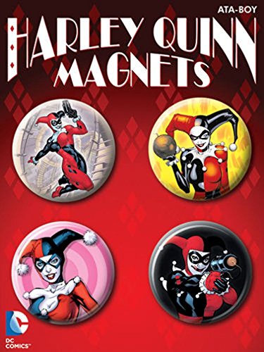 - Includes one each of four different Harley Quinn character button magnets; each magnet measures 1.25" in diameter