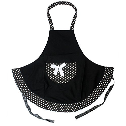 -. Title : エプロン、SODIAL(R)黒のドットの弓ホーム/キッチンエプロン