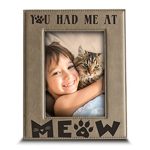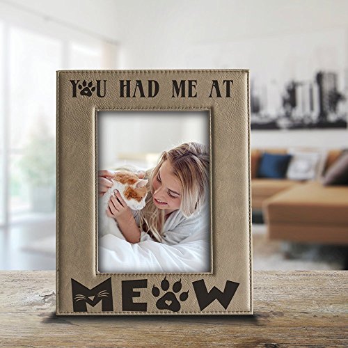 Bella Busta- You Had Me At Meow- Cat Frame-Pet Frame-Engraved Leather Picture Frame (4"x 6" Vertical (Leather))