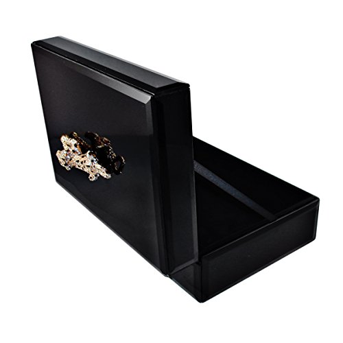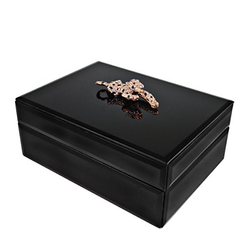 Bejeweled Glass Jewelry Boxes J200B Jewelry Box with Crystal Panther Design, 9.6 x 7 x 3.3", Black
