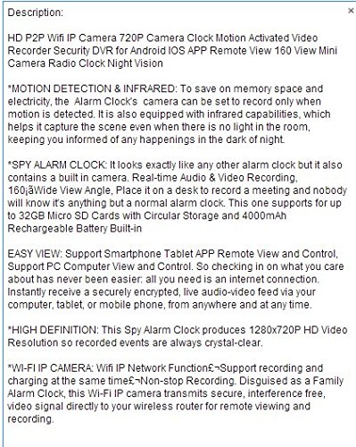-. Title : HD P2P Wifi IP Camera 720P Camera Clock Motion Activated Video Recorder camcorder, voice recorder baby monitor