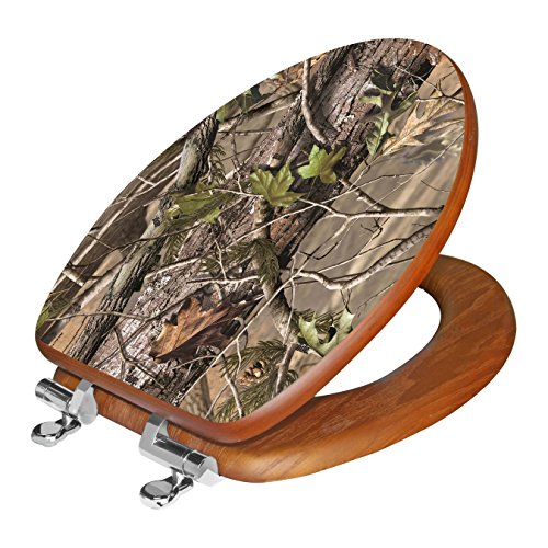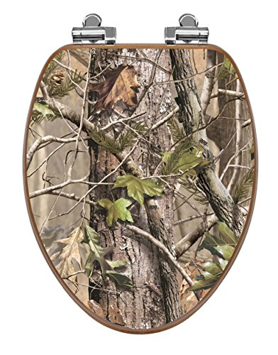 TOPSEAT 3D UPland Series Elongated Toilet Seat with Slow Close Chrome Hinges, Wood, Realtree