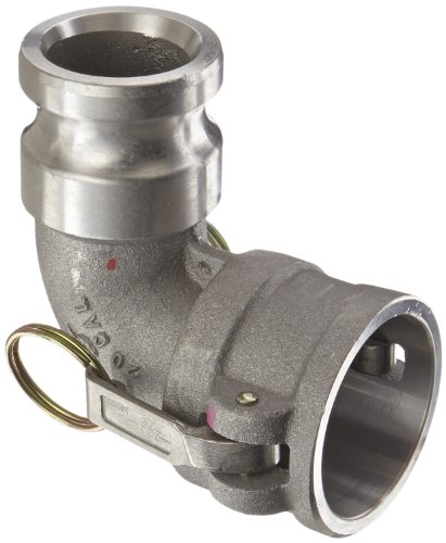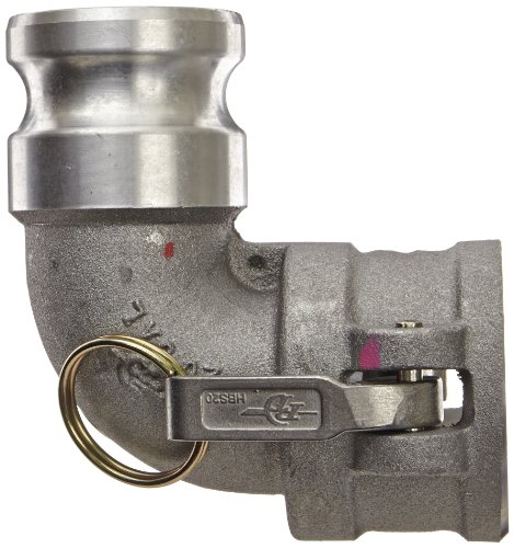 PT Coupling CAL Series 20CAL Aluminum Cam and Groove Hose Fitting, 90 Degree Elbow, Stainless Steel 300 (HBS) Cam Arms, 2" Coupler x Adapter