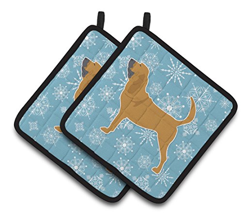 Caroline's Treasures Winter Snowflake Bloodhound Pair of Pot Holders BB3484PTHD, 7.5HX7.5W, Multicolor