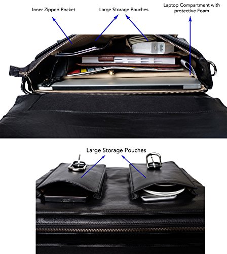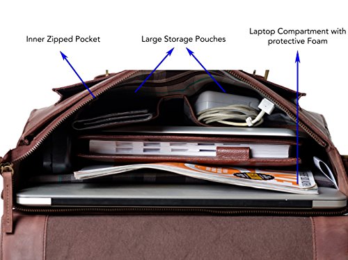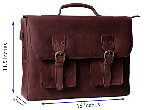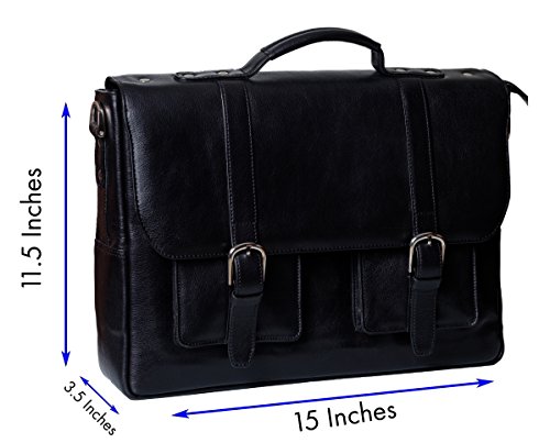 -. Title : Genuine Leather Briefcase/Messenger Laptop Bag for Men, GORDON, fits 15.4 inch Macbook Pro, adjustable strap, 15 inch by 11.5 inch by 3.5 inch, by Ladderback