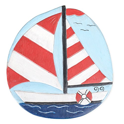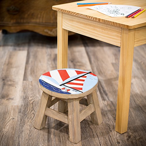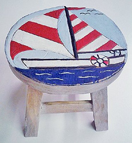 Studio : Sea Island Publisher : Sea Island Product Description Colorful sailboat stool will be used constantly at the lake or beach house. Clever and unusual and of course all hand-carved and hand-painted in cheerful nautical colors of blues and reds. Nice details! A perfect gift item for a young boy to use at Grandmother's beach house. . 10 in. tall and about 10 1/2 in. X 10 1/4 in. 0