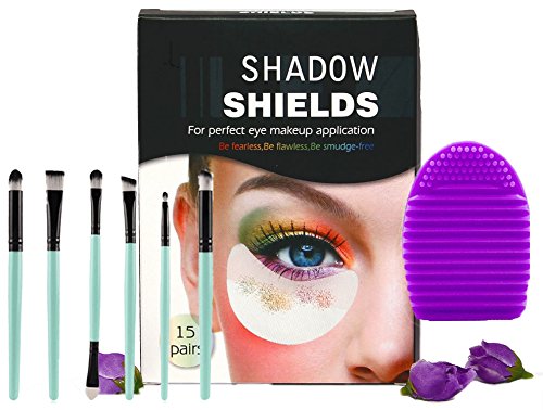 The PERFECT Bundle for makeup lovers everywhere! 30 Pack of Professional Eyeshadow Shields, Six Professional Eye Makeup Brushes (Mint), One Makeup Brush Cleaner (Purple)