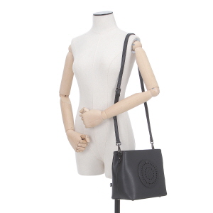 트렌디한 버킷백 쉐입에 레이스 모양의 펀칭 디테일로 포인틀르 준 버킷&크로스