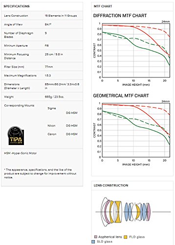- Feature : As part of the Art line within Sigma's Global Vision series, this lens' is designed to achieve truly notable optical performance and is ideally suited for creative and artistic applications. / Fast f/1.4 maximum aperture is well-suited for working in low-light conditions and also provides greater control over the focus position when using shallow depth of field techniques. / Three FLD and four SLD glass elements have been incorporated within the lens design to ensure high image sharpness, clarity and contrast. / HSM (Hyper Sonic Motor) realizes quick and quiet autofocusing, which is further complemented by an optimized AF algorithm to produce smoother focusing performance. / 47th Street Photo is an Authorized Sigma USA Dealer. This item is covered by 4 Year Sigma USA Warranty.
