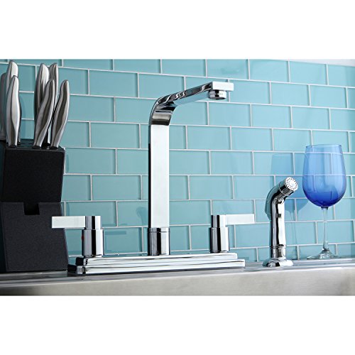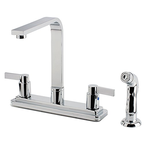 Kingston Brass KB8791NDLSP Nuvofusion Euro High Rise Spout Kitchen Faucet with Sprayer, Polished Chrome