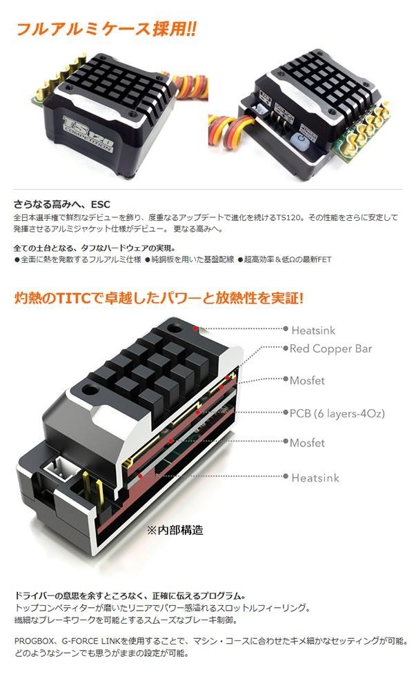 無線操縦機用カスタムパーツです。全日本選手権で鮮烈なデビューを飾り、度重なるアップデートで進化を続けるTS120シリーズ。その性能をさらに安定して発揮させるアルミジャケット仕様がデビュー。ドライバーの意思を余すところなく、正確に伝えるプログラムで更なる高みへ!! |