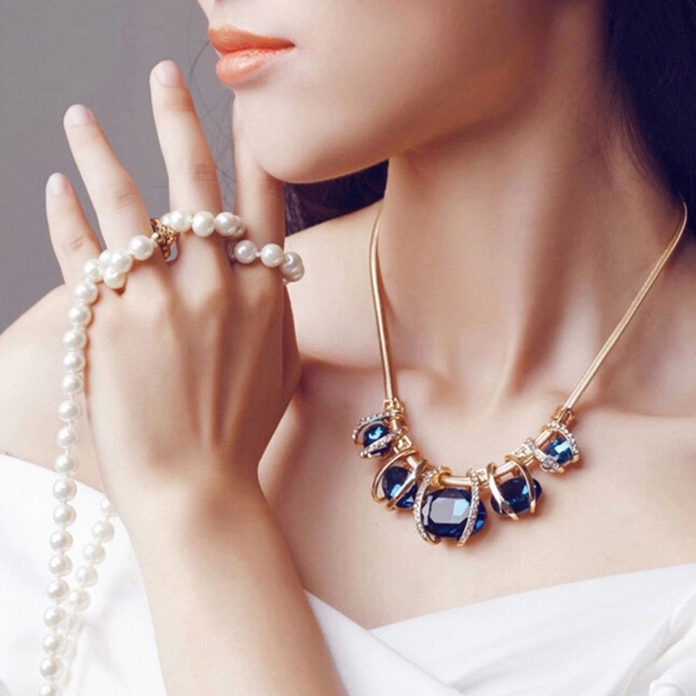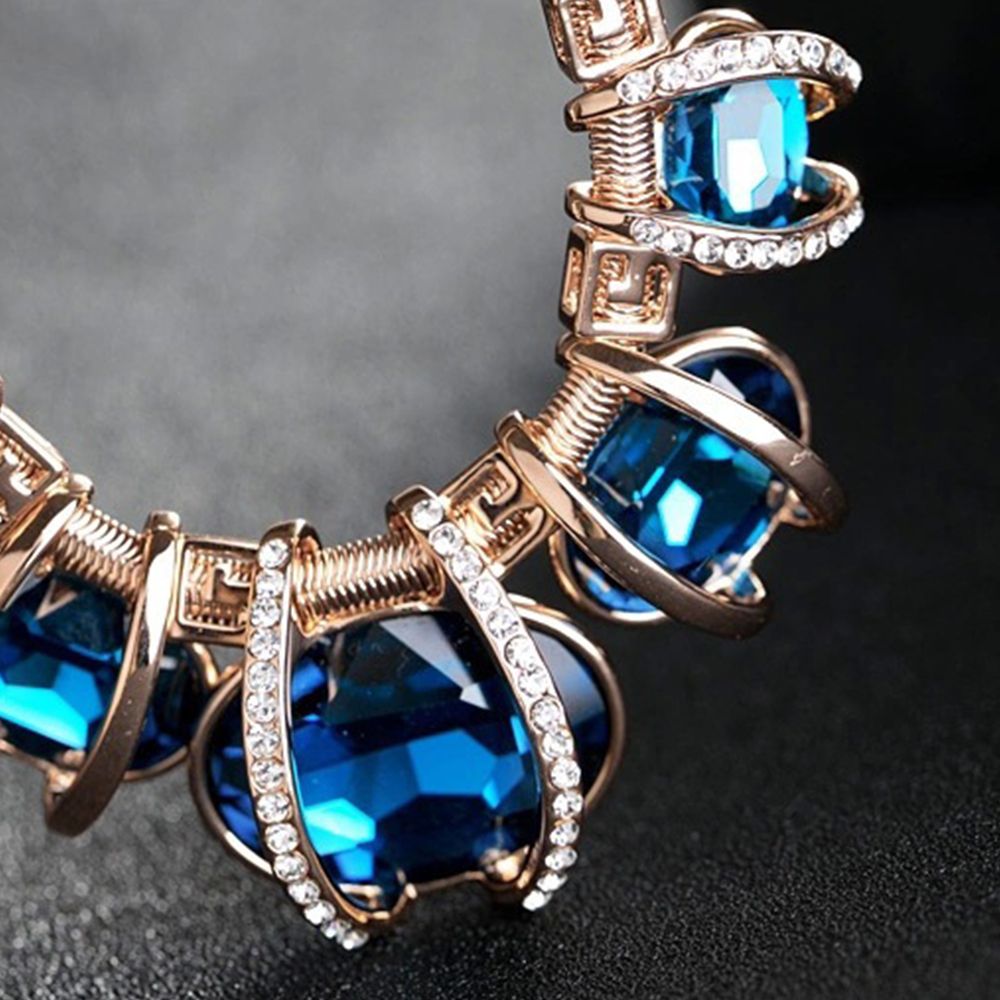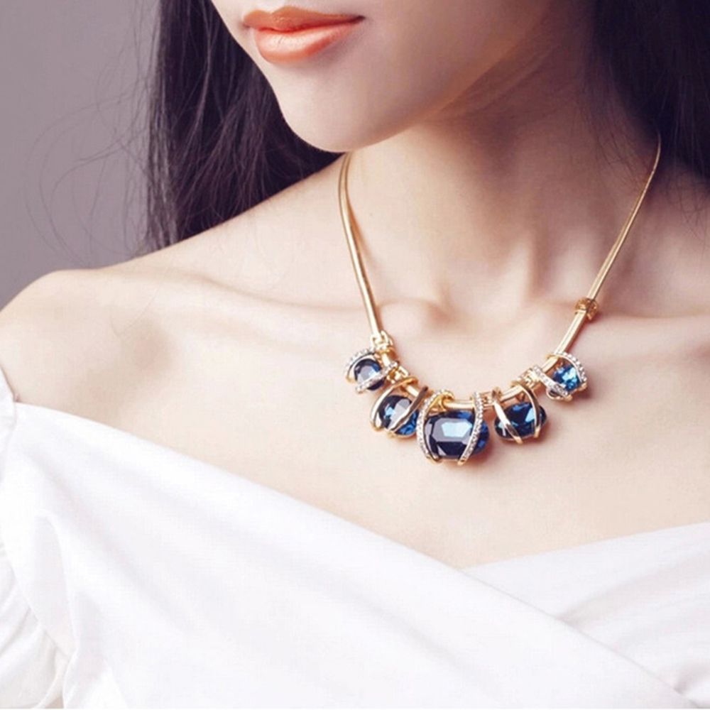 Women's Fashion Charm Chunky Blue Crystal Chain Choker Pendant Necklace Jewelry