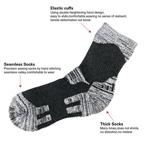 -. Feature : COMFORTABLE TO WEAR - Precision sewing socks by hand stitching,seamless valley,Exquisite design heel socks with Y-type stitching,full wrap,reduce foot pressure,comfortable to wear. / SOPHISTICATED VENTILATION DESIGN - Foot side portion has a breathable mesh desige,the use of advanced weaving technology,prespiration breathable.The body produces heat moisture can be derived,regulation of body temperature and keeps you cool.Drying,drying speed is 8 times of cotton. / USING DOUBLE HEIGHTENING HAND DESIGN - easy to slide,comfortable,wearing no sense of restraint,tensile deformation,no loose. / MOISTURE WICKING AND ANTI-BACTERIAL - They keep you feet warm without making them sweat,help you avoid blisters during your hiking or running. / Ideal for outdoor sports-snowboard,Camping and hiking,climbing,trekking,outdoor trail