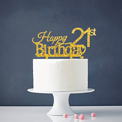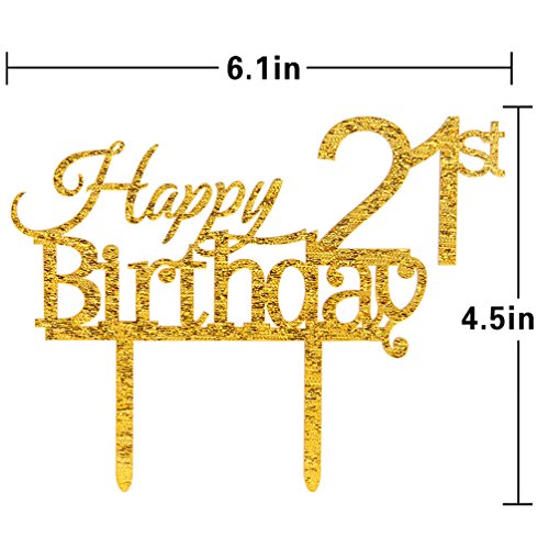 Happy 21st Birthday Cake Topper - Gold 21st Birthday Party Decoration Supplies