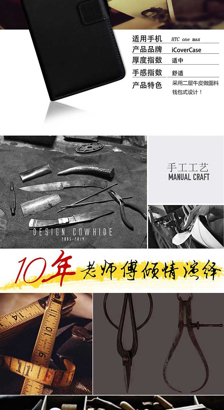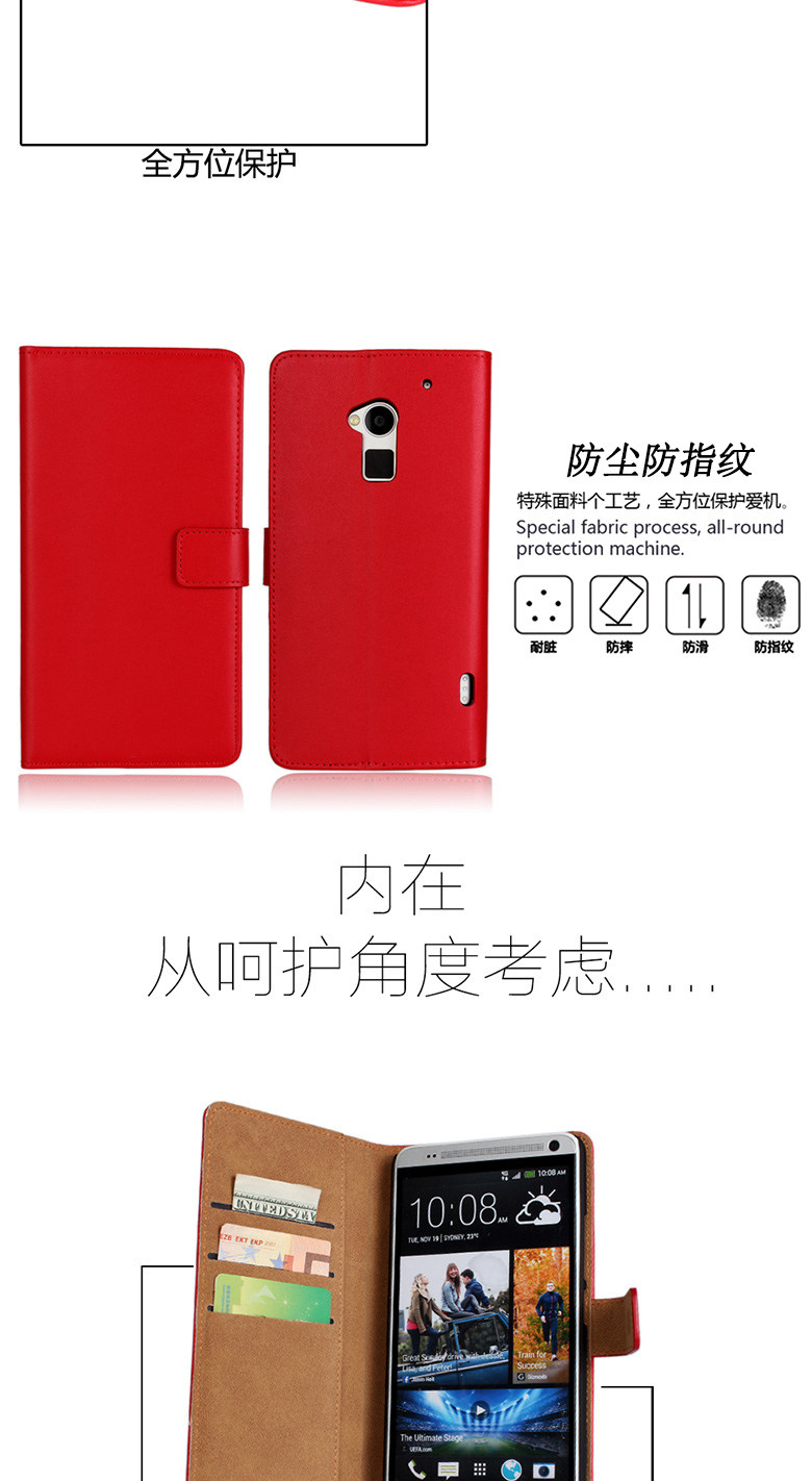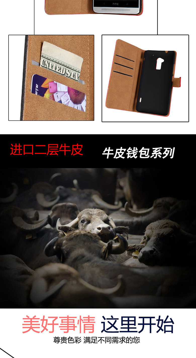 Genuine Leather  Flip Case with Card Holder for HTC One Max T6 12590