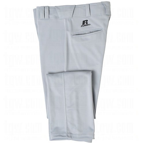 Studio : Russell Publisher : Russell Binding : Misc. Product Description Russell Mens Boot Cut Baseball Pants...Every Play Counts! Made To Play With Durable Stretch Material! Russell Mens Boot Cut Game Baseball Pant features: Constructed with lightweight stretch fabric for a greater range of motion Flat front with a 21/2" wide elastic waistband, zip fly and double snap closure Double knees for added durability and sliding protection Back welt pockets are mesh lined for added breathability Embroidered Russell and R above the left back pocket Hemmed bottom (17" width) boot cut See the Russell Baseball Size Chart for fit information Machine Wash Tumble Dry 100% polyester double knit Russell Mens Boot Cut Baseball Pants...The Preferred Choice Of Athletes! 0