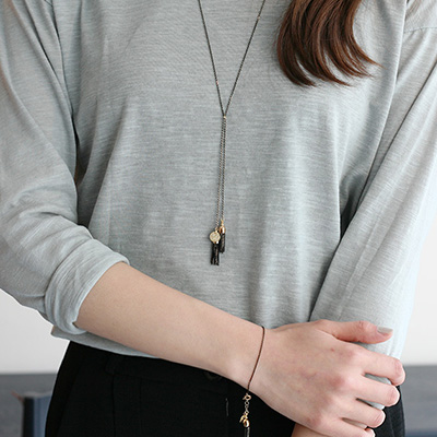 | Product Info. · 상품명 : 미니테슬 롱네크리스 · 사이즈 : 총 길이 98cm/ 테슬 2cm · 소재 : 신주(Brass) · 컬러 : 그레이, 블랙 · 귀여운 작은 테슬이 달린 롱 네크리스 입니다. · 체인이 투톤으로 빛나 독특한 분위기의 쥬얼리입니다. · 제조국 : 한국 · 제조사 : 라땅뜨 자체제작 (O)/ 협력업체 · 쥬얼리 제품 특성상 착용흔적(스크래치, 부품분리)이 있을 경우 교환및 환불이 어려우므로 이점 양해 부탁드립니다. · 모니터에 따라 색상이 조금씩 달라 보일수 있습니다. 이는 하자의 사유가 되지 않습니다. |