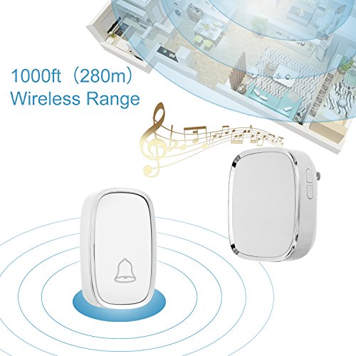 1000ft Wireless Range-The wireless doorbell operating range up to 1,000ft/280m in open area ensures that you will never miss any visitors or package.2 plug-in receivers will not interfere each other which can installed in different rooms or floors.