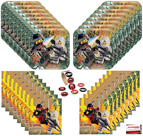 Ninjago Lego Happy Birthday Party Supplies Bundle Pack for 16 (Bonus 16 Ninja Stickers & Party Planning Checklist)