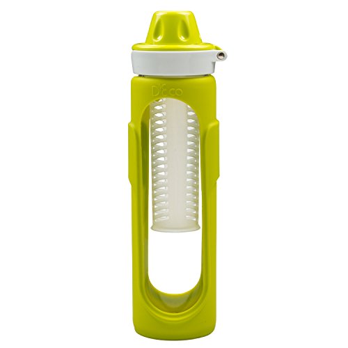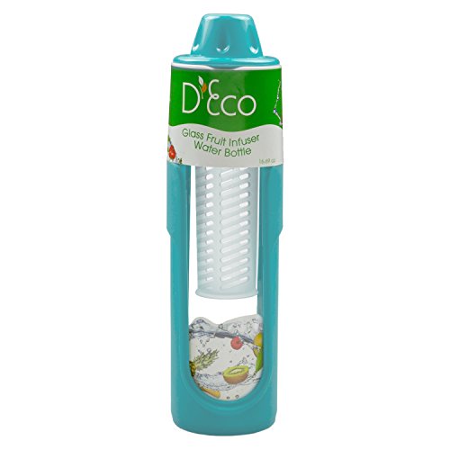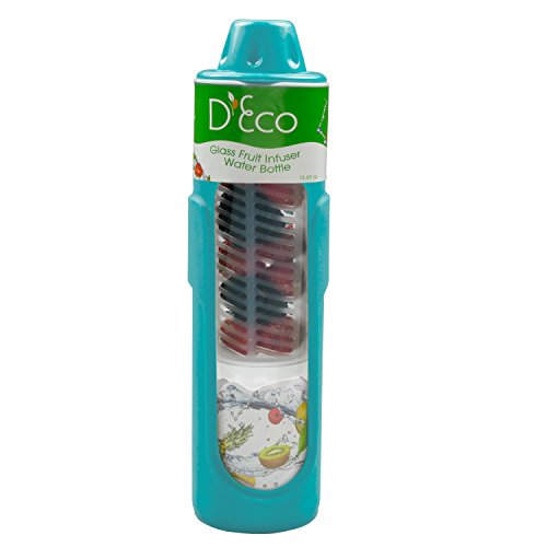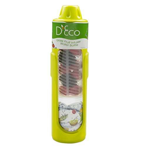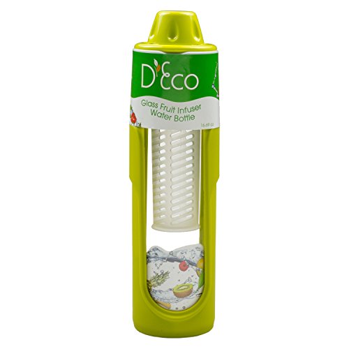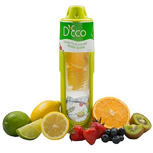 -. Title : Fruit Infused Water Bottle- Glass Fruit Infuser (20 oz) with Silicone Grip and Built-In Cylinder by D'Eco