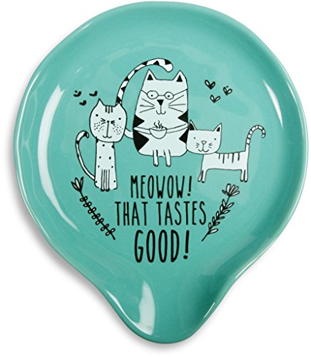 -. Title : Pavilion Gift Company It's Cats & Dogs-"Meowow! That Tastes Good" Teal Ceramic Cat Spoon Rest, Small, Teal