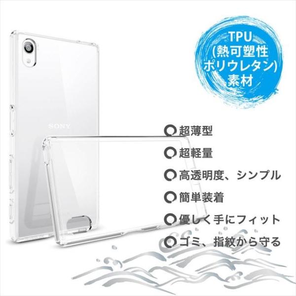 衝撃の薄さ!軽さ!  Sony Xperia Z5 premium用 TPU保護ケース 抜群の透明度でスマホ本体のデザインを邪魔しません。 柔らかな素材が手にフィットして、 グリップ感がよいのですべりにくく、持ちやすいです。 TPU(熱可塑性ポリウレタン)素材が、あなたのZ5 premiumへのホコリやゴミ、指紋の付着を防ぎ、さらに衝撃からあなたのZ5 premiumを守ります。 ぜひお試しくださいませ。 ・対応機種 : Sony Xperia Z5 premium・素材 : TPU(熱可塑性ポリウレタン) 超薄型 / 超軽量 / 高透過率性 / 指紋・汚れ防止加工 / 撥水加工
