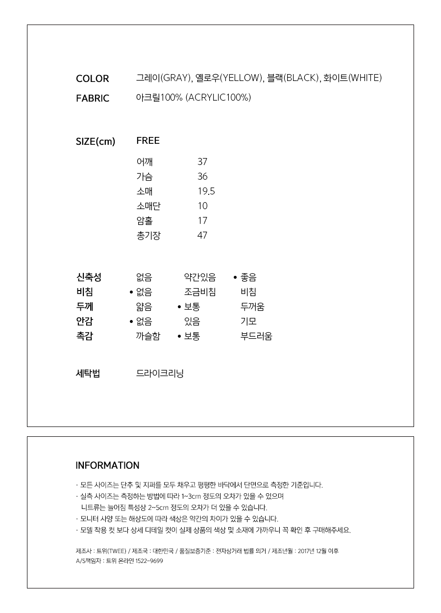 부드러운 아크릴 원단으로 몸에닿는 터치감이 좋았구요~