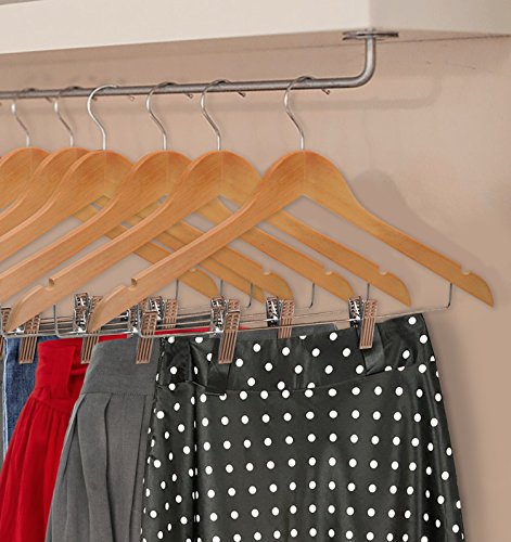-. Binding : Kitchen -. Brand : Decor Hut -. Color : Beige -. EAN : 0636134932681 -. Feature : Set of 10 wooden suit hangers with clip / Solid wood construction to hold your heaviest clothes / Shoulder notches allows for hanging thin straps / Color: Natural/Chrome 360-degree swivel Hook will fit all standard closet rods -. IsAutographed : 0 -. Label : Decor Hut -. Manufacturer : Decor Hut -. Model : DH001-43 -. MPN : DH001-43 -. PackageQuantity : 10 -. PartNumber : DH001-43 -. ProductGroup : Home -. ProductTypeName : HOME -. Publisher : Decor Hut -. Studio : Decor Hut -. Title : Decor Hut Wooden Non Slip Suit, Pants & Skirt Hanger, Metal Clips Can Be Moved so You Adjust to Wait Size pack of 10 -. UPC : 636134932681