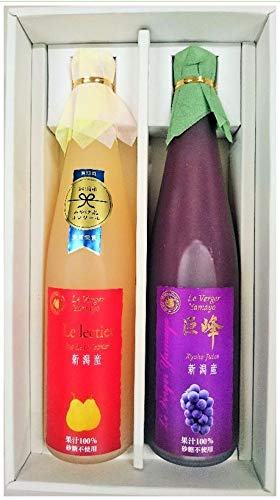 原材料:原材料:西洋梨(新潟県産ルレクチェ)/酸化防止剤(ビタミンC)、PH調整剤 ぶどう(新潟県産巨峰)/酸化防止剤(ビタミンC)