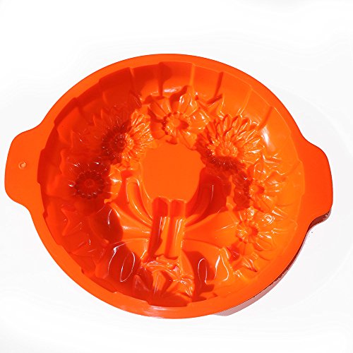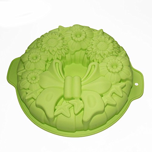 X-Haibei Round Holiday Wreath Bundt Jello Cake Pan Silicone Baking Shallow Mold 10inch