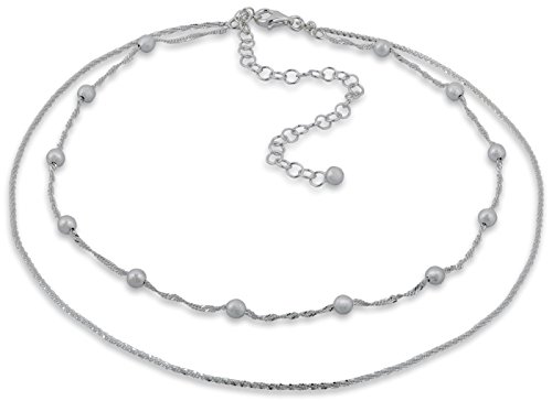 SilverLuxe Sterling Silver Double Row Choker Necklace -Singapore w/ Bead and Margarita Chain 12 + 4"