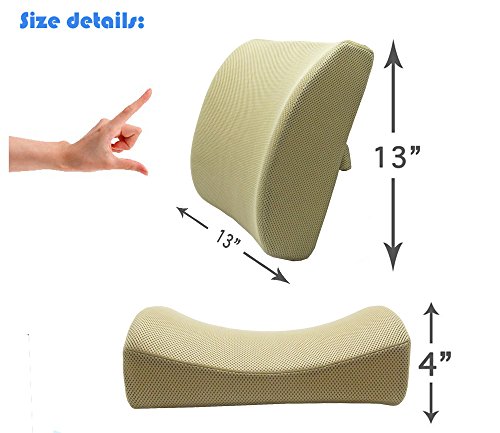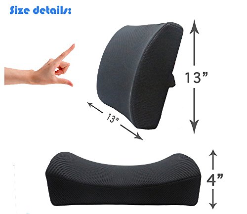 -. Feature : ALLEVIATES LOWER BACK PAIN - relieve lower back pain and tightness from long time sitting; support your lower back's natural curve to achieve the perfect spinal alignment and promote a healthy vibrant posture. Chiropractor recommended back support for surgery recovery and people who suffers from lower back pain, Piriformis, Lumbosacral Spondylosis, Fibromyalgia etc / STURDY SUPPORTIVE AND EFFECTIVE- Ergonomic Streamlining moulded with premium quality memory foam for optimal lumbar support and never flattens out, a proper firmness memory foam compresses to take the shape of your back and provide comfort and relief numbness of your back / ADJUSTABLE STRAP keeps the back support cushion in place and prevent the back cushion from sliding down, an extension straps make the lumbar pillow fits perfectly on any office chair, executive chair, car seat, SUV seats, truck seats, wheelchair and recliner seat etc / BREATHABLE REMOVABLE AND WASHABLE 3D mesh ventilative cover keeps air circulating so sweat and moisture doesn't fill it up, to keep you cool and comfortable all day long. / 60 DAYS LOVE IT OR RETURN IT GUARANTEE - Risk Free, 100% customer satisfaction, hassle free 60 days return window, try it now with no worries.