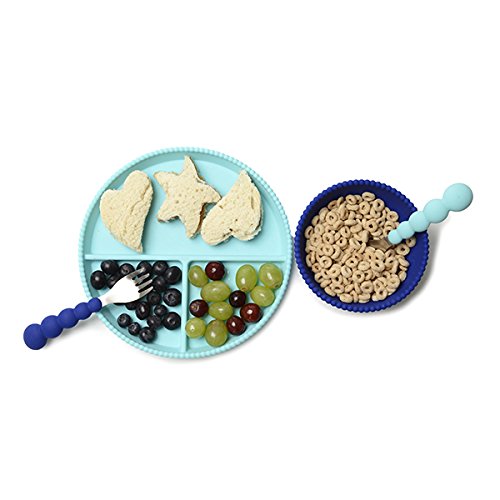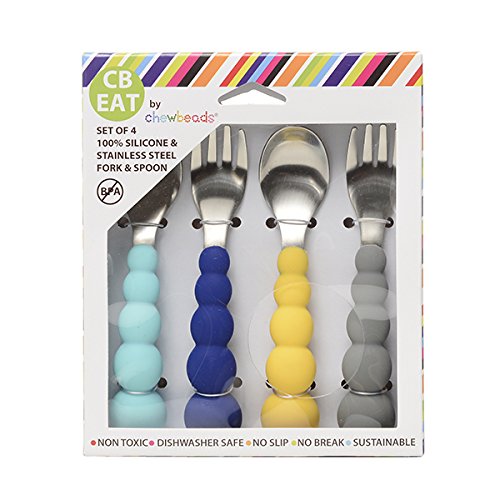 (Chewbeads)/Kitchen Dining/Tableware/DIRECT FROM USA/CB EAT 100% Silicone Stainless Steel Self-Feeding Flatware Set by Chewbeads, 4-Pack, Blue /Gr...