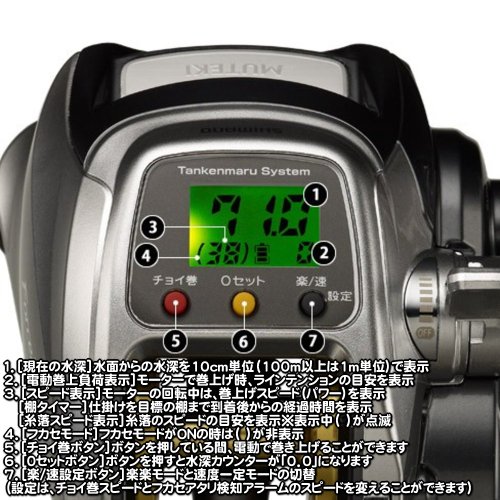 Binding : Sports Product Description It is equipped with a compact body that is low profile for the "COOL COMPACT" design, equivalent to No. 3000 class "MUTEKIMOTOR", destroy stereotypes No. 800, No. 1000 of "FORCEMASTER800MK/1000MK". Drag the maximum hoisting power 47kg, proud of the power of best-in-class endurance and 6.2kg hoist, adopted a carbon cloth washer that combines strength and smooth good start, and achieved drag force of 11.5kg. I realized also introduced Sam rest clutch and quick return clutch, could not have talking on No. 1000 traditional, operational feeling and comfortable light of No. 400 par. New program of nine as "SUPER FREE SPOOL", aluminum round knob can get, high-spec model that can feel in the palm the evolution of the electric reel. Legend of the strongest class, begins now. ● little volume button: take the yarn dandruff, apply an invitation, when such, can be done only by button operation, function in order to wind up slightly. ● Shelf Timer: timer representing the elapsed time from when the tackle reaches shelves given. Fishing in to use the scattered bait, it is a measure of timing to swap. It is equipped with what was the function of the round to see probe ever. ● winding electric super slow: in super slow winding, the winding in a stable, the function is a valid useful "invitation". ● spool learning correction: when the difference occurs in the water depth of the display counter and marking of the line, get help function can be tailored on the spot at the time of the actual fishing. ● yarn drop speed display: Displays to counter the industry's first fall speed, the gimmick. Such as fishing full Fukase, even if subtle hit, it becomes possible to read a change in the number displayed. 0
