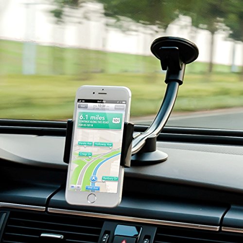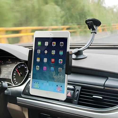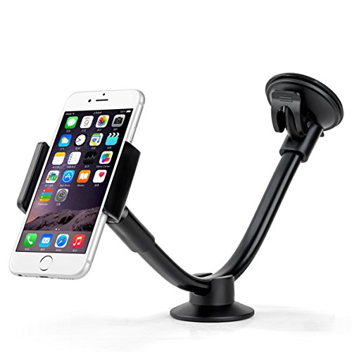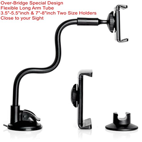 DHYSTAR Windshield Long-Arm Car Mount 2-in-1 Mobile and Tablet Car Holder Cradle With Dashboard Base Universal for 3.5"-5.5" Smart phones / Cell phones / GPS, 7"-8" Tablet, iphone / ipad Mini - Black