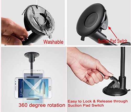 Strong Vacuum Suction Cup Pad: with Viscous Silicone, Strong adsorption force, and with extra Dashboard Support Base, Holder with soft silicone protection mats for your device, secure & sturdy during driving; and Washable Suction Cup(When Car Holder's Suction Cup pad is dirty or Suction Force weakened, please wash the suction pad with clean water, and naturally Air dry to use and Suction force can be restoreed as ever)