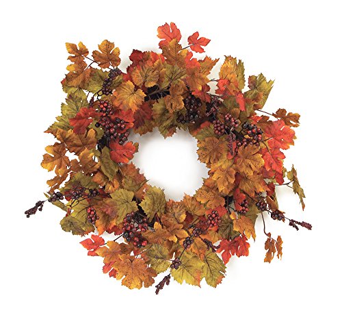 Melrose International Fall Wreath with Warm Tones of Amber and Orange Maple Leaves and Berries, 24-Inch