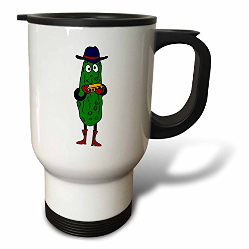3dRose tm_196091_1 Funny Pickle Playing the Harmonica-Travel Mug, 14 oz, Stainless Steel, White