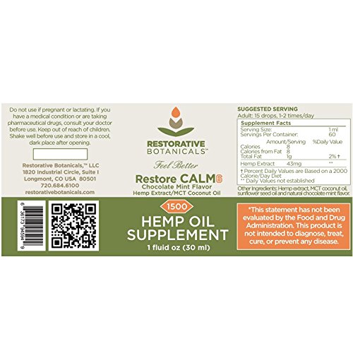 -. Title : Restore CALM6 h.e.m.p Oil Extract 1800 mg Advanced Blend Chocolate Mint 1 ounce (30) ml Restorative Botanicals - supports functional calming for stress relief, relaxation, healthy sleep patterns
